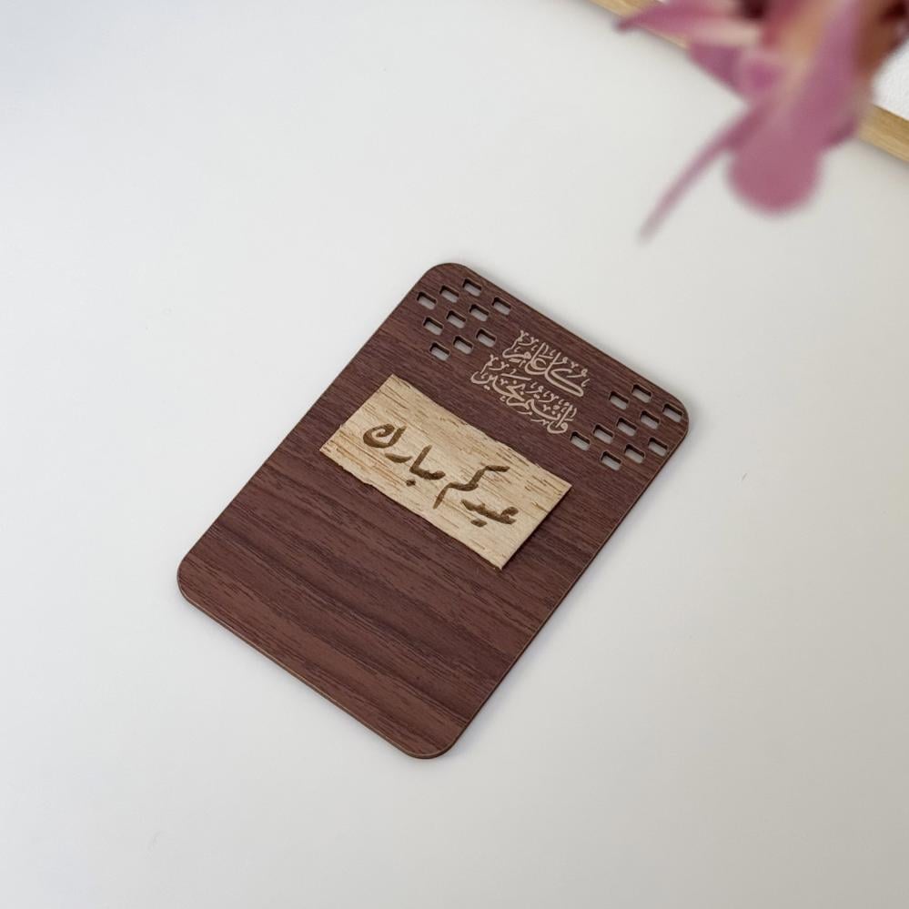 التعبئة : رقائق عود بعبارة (عيدكم مبارك)