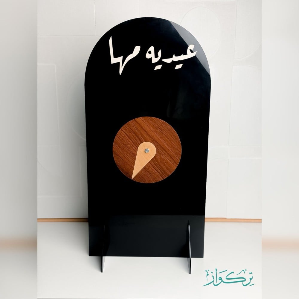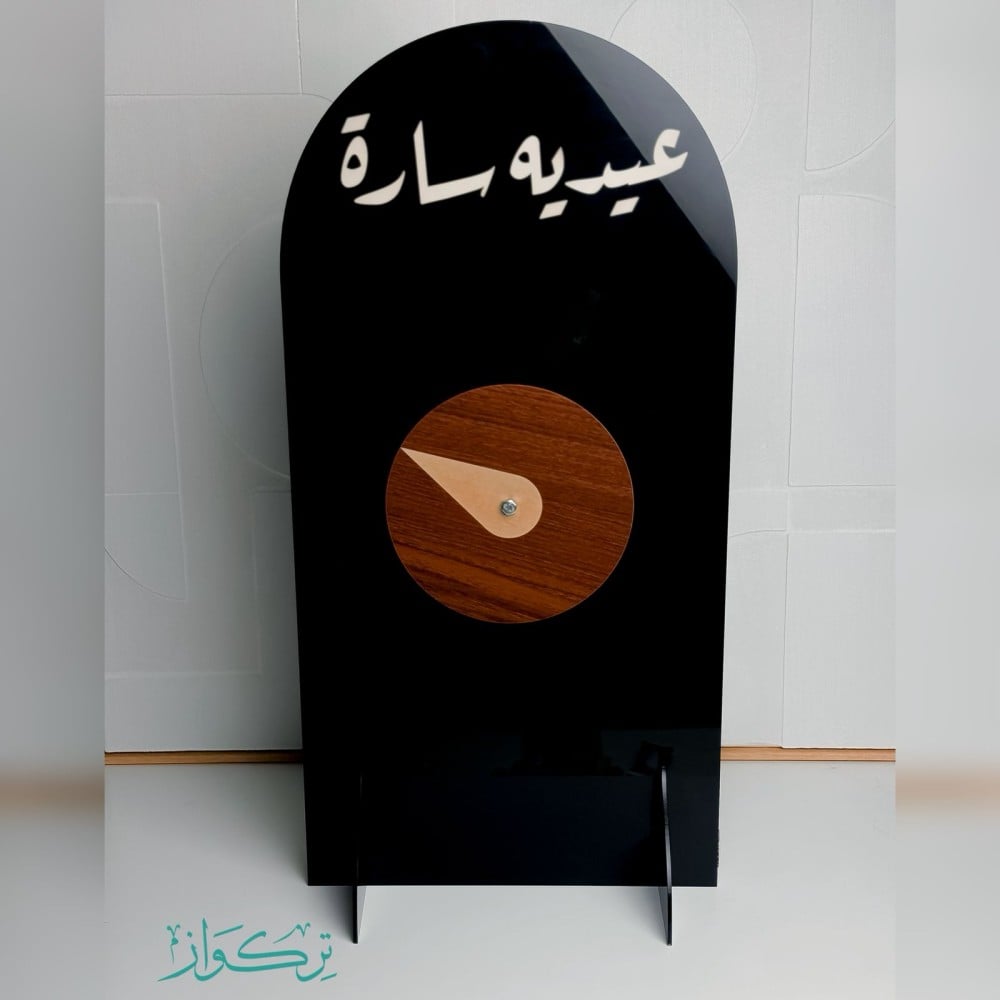 مصنوع من الإكريليك الاسود اللامع بقاعدة خشبية انيقة.
