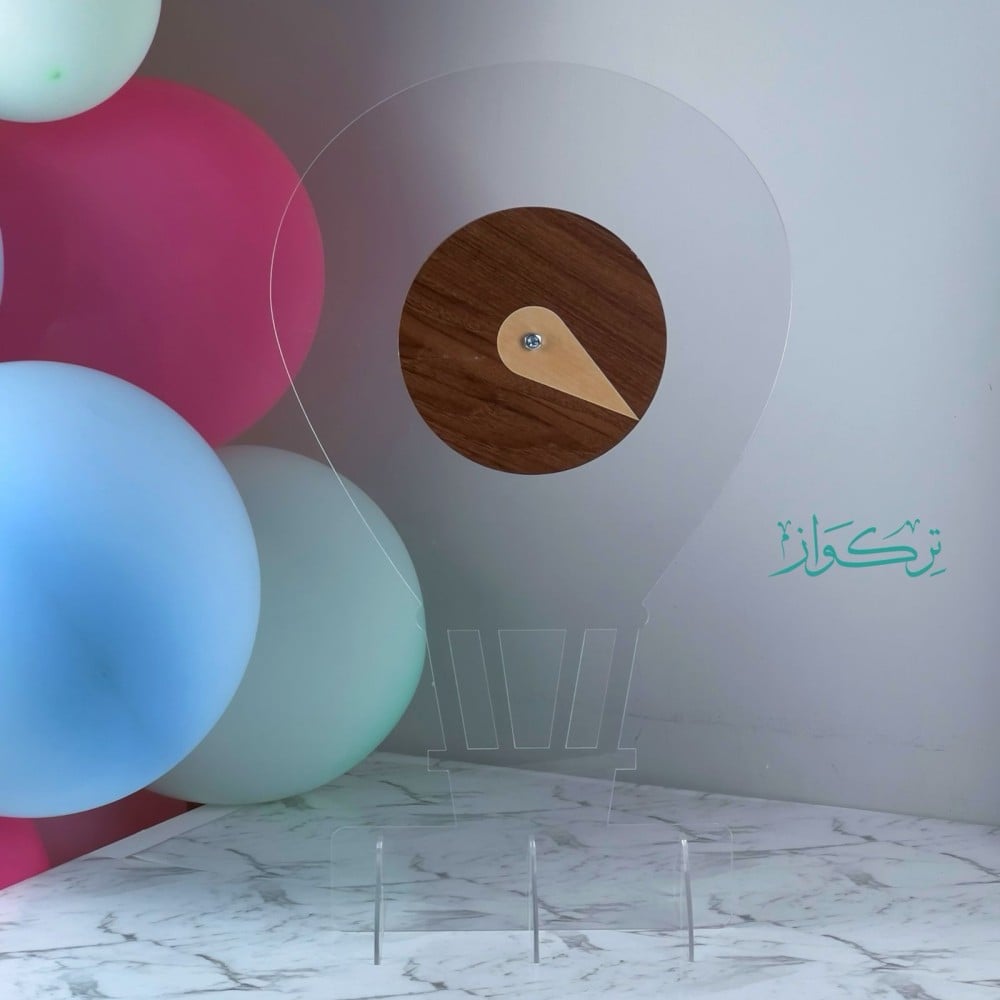 مصنوع من الإكريليك الشفاف و الخشب البني.