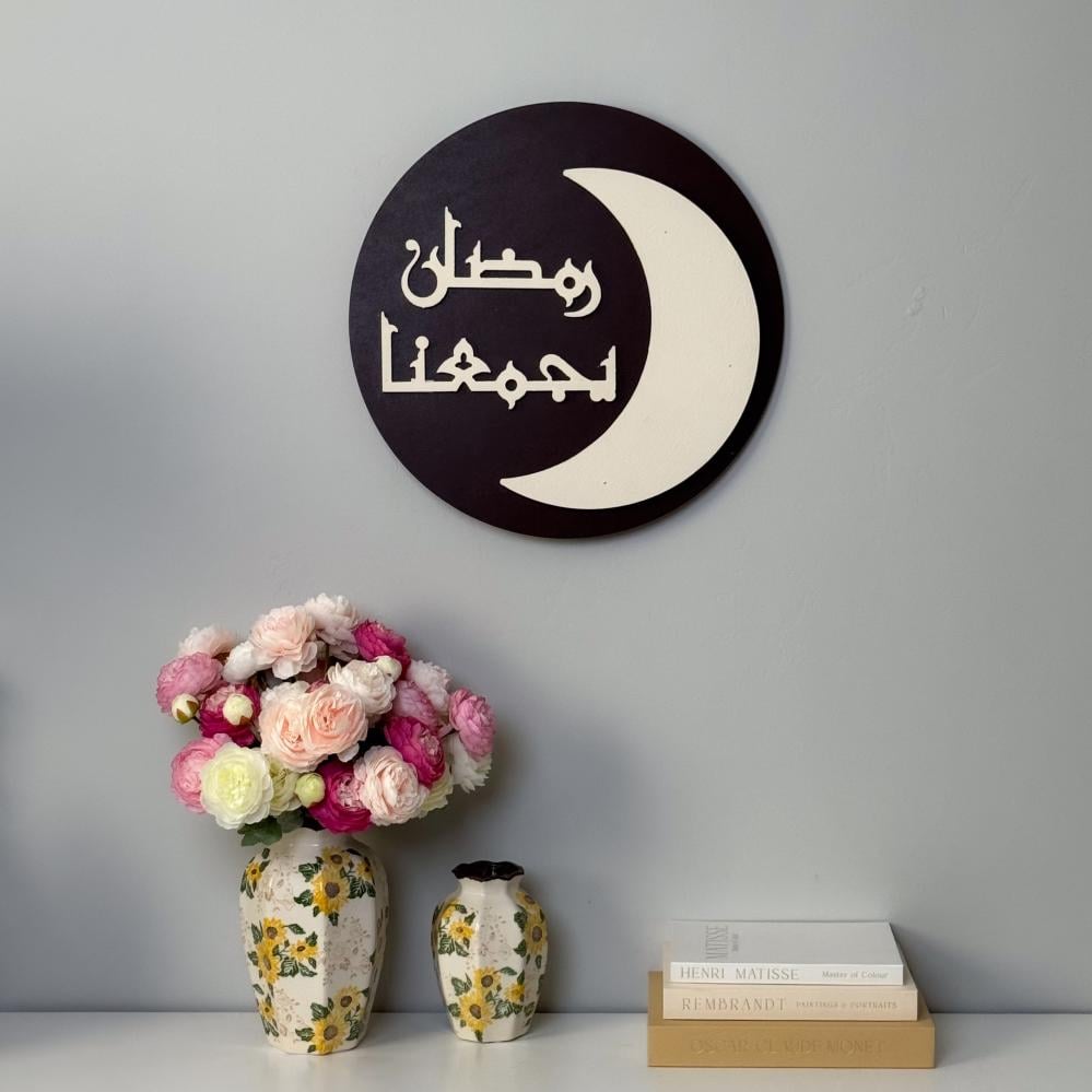 أضف لمسة دافئة إلى منزلك مع لوحة رمضان يجمعنا بتصميم القمر المضيء، تجمع بين البساطة والفخامة لتمنح زوايا المكان جمالًا يعبّر عن أجواء الشهر الكريم.