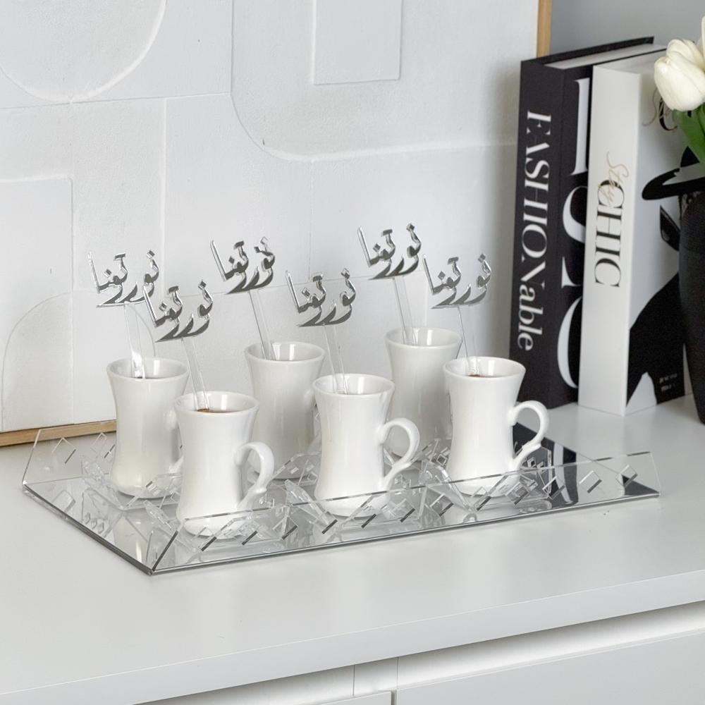 صينية شاي و 6 قواعد و6 ملاعق