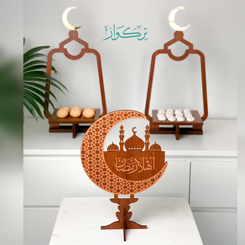 تأمل لمسة من الفخامة والتميّز على مائدتك الرمضانية مع صينية فوانيس . صمّمت على شكل فانوس بإرتفاع رائع تجمع بين الجمال والعمليّة مع رسم هلال في أعلى الصينية.