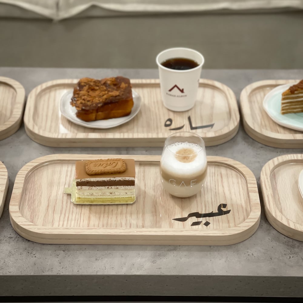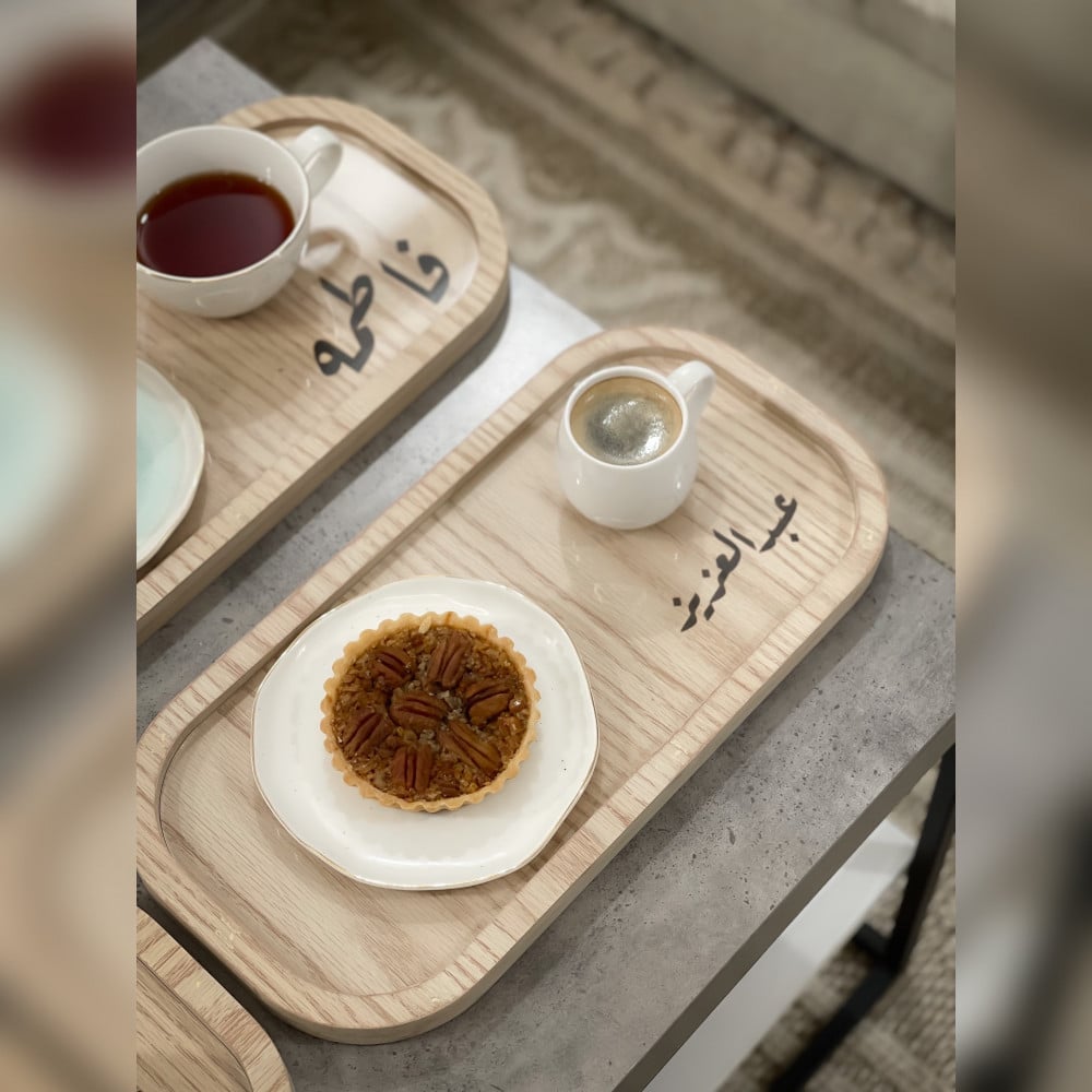 صينية السعادة انيقة و مختلفة تحمل اسمك و اسم من تحب، لتضيف أجواء رائعة لقهوتك مع من تحب.