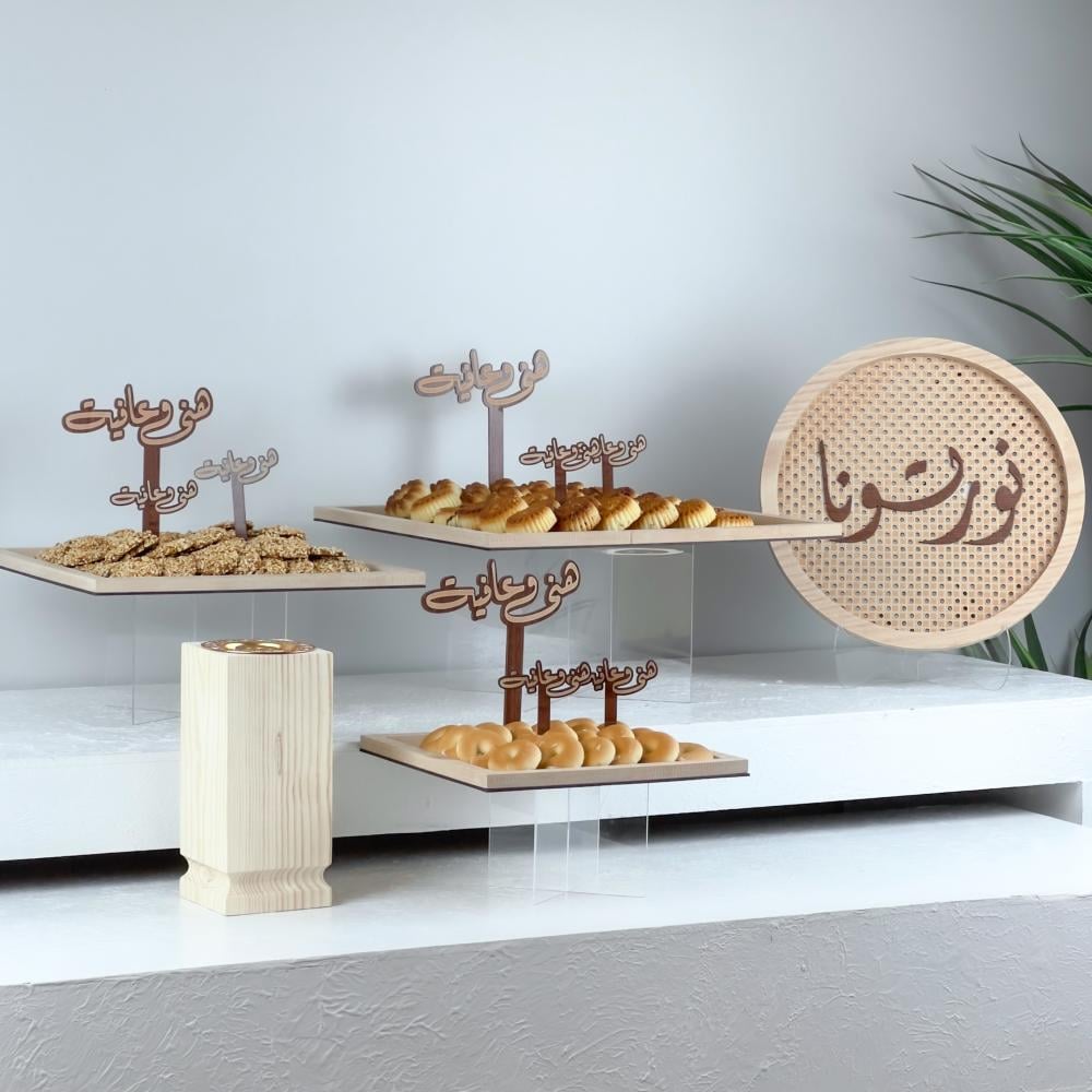 - صينية خشبي بحجم وسط مع استاند اكريليك.
